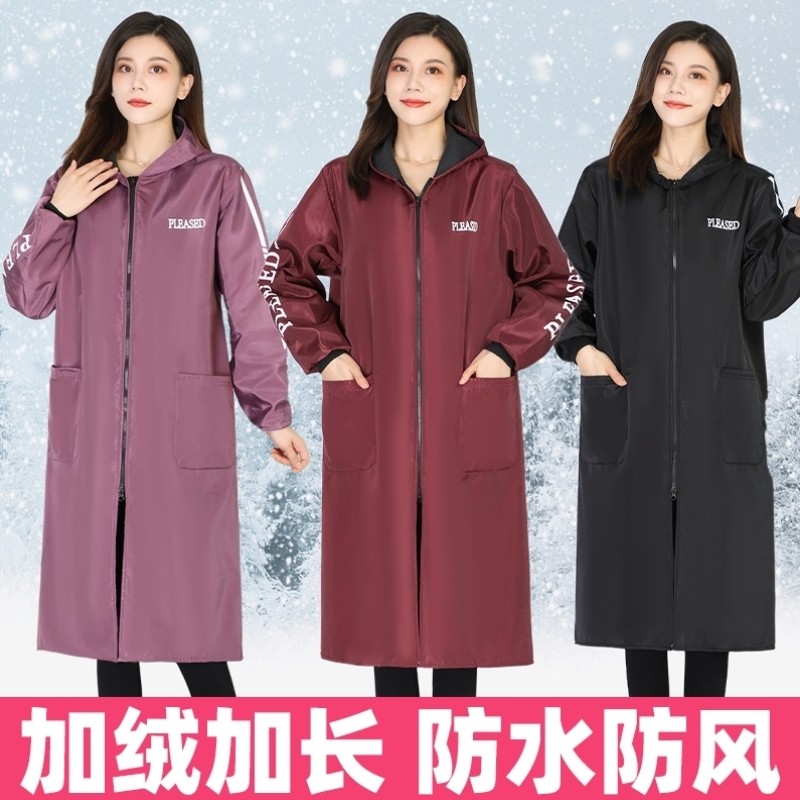加绒过膝加长款工作服套羽绒服长袖外套防水围裙大人冬季男女罩衣