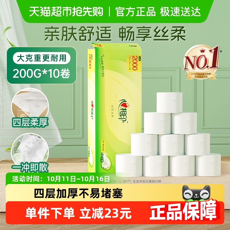 【包邮】心相印茶语丝享无芯卷纸4层200g10卷家用厕纸卫生纸