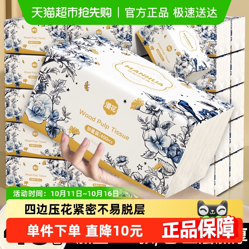 漫花400张商务抽纸加厚面巾纸一分钱卫生纸新人抢购2元包邮小商品