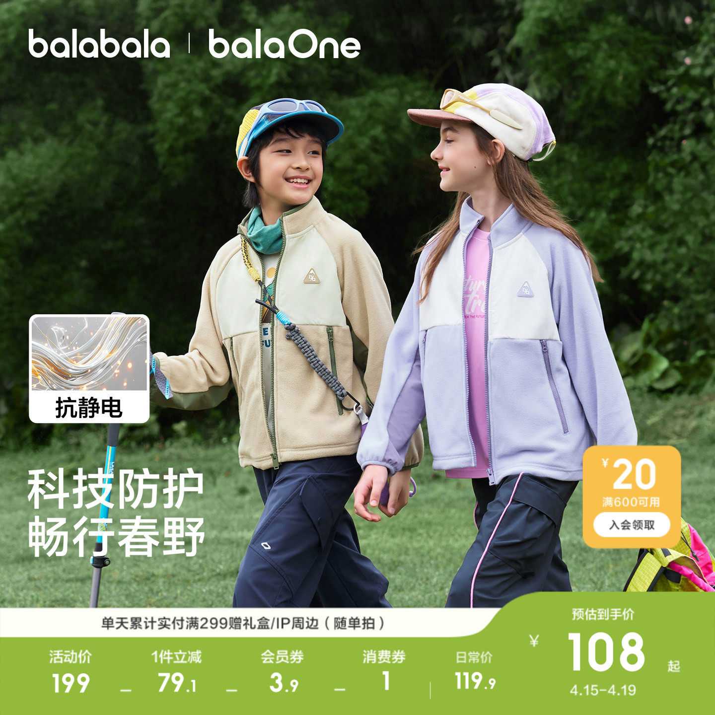 巴拉巴拉童装儿童外套男童女童宝宝上衣衣服新款春装摇粒绒防静电