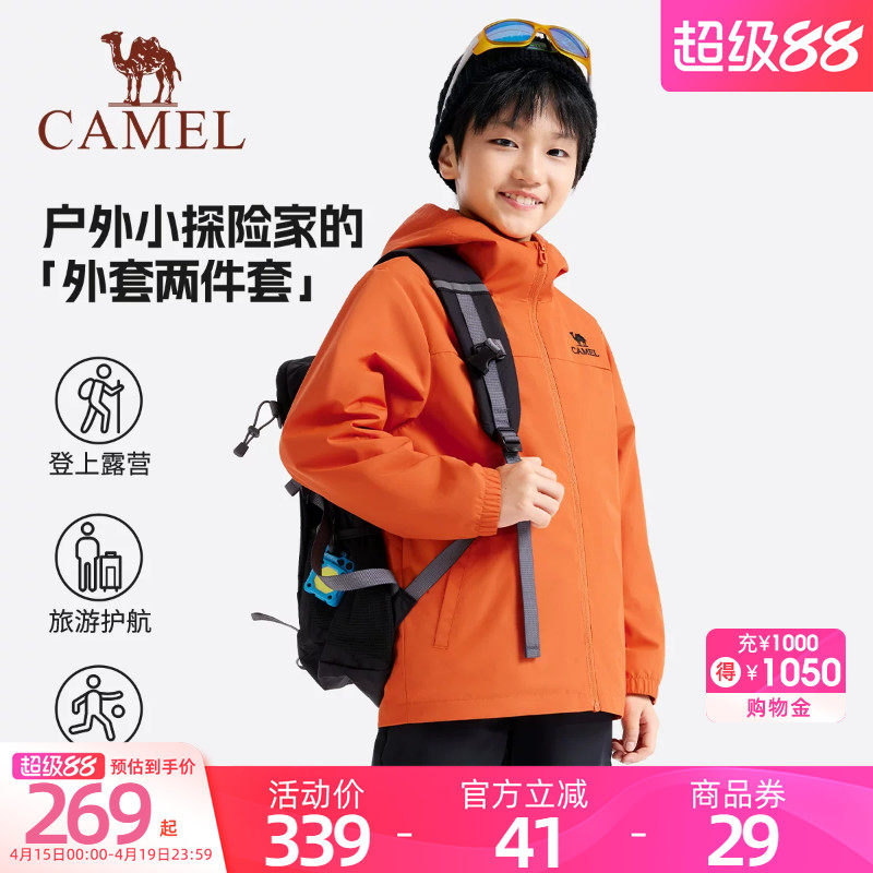 骆驼儿童外套女童春户外防风夹克防泼水软壳上衣男童摇粒绒两件套