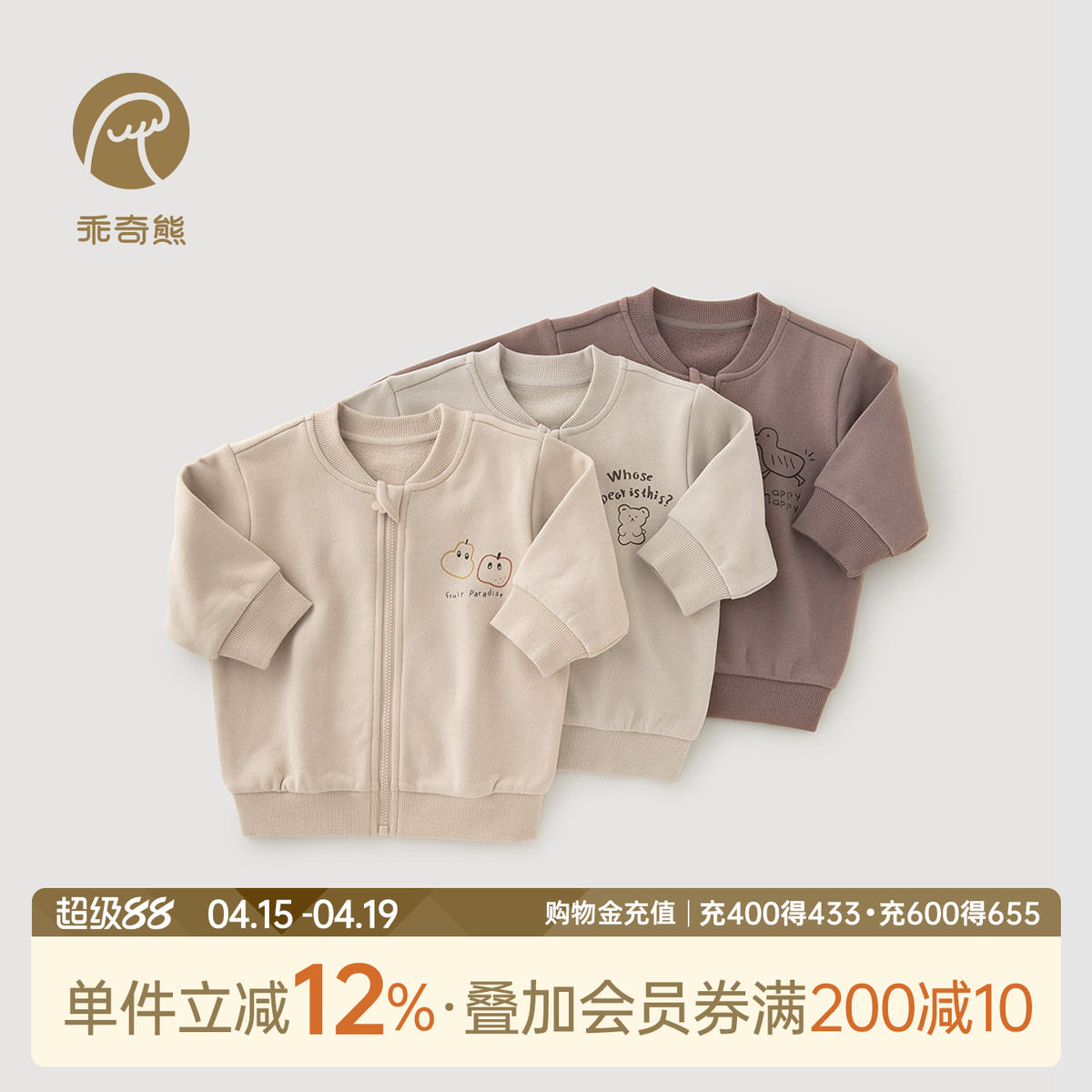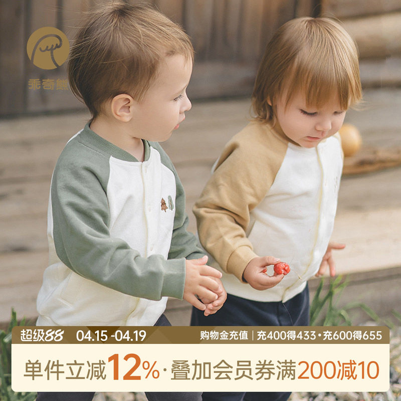 乖奇熊婴幼儿卫衣外套春秋季纯棉抓绒保暖宝宝开衫上衣男女童外出