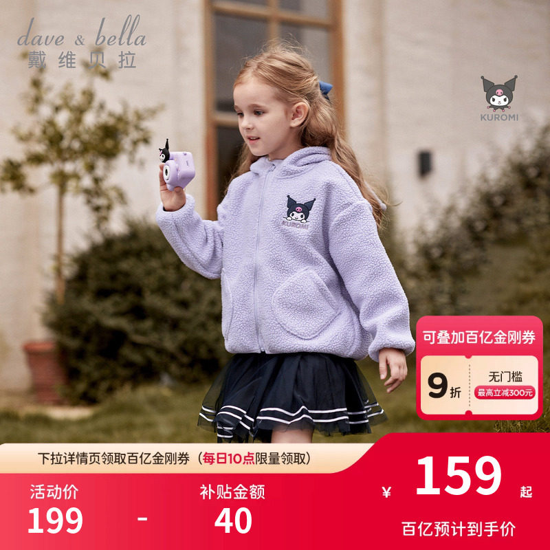 库洛米联名戴维贝拉女童外套儿童摇粒绒童装宝宝衣服春装新款女宝