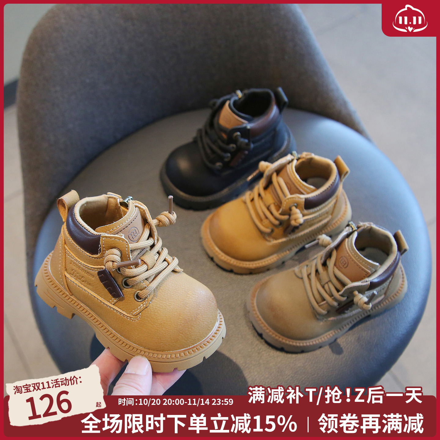 儿童马丁靴男童女童短靴冬季女宝靴子秋冬加绒宝宝小黄靴英伦皮靴