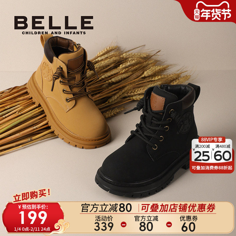 百丽童鞋儿童马丁靴2025秋冬新款女童大黄靴男童短靴宝宝加绒皮靴
