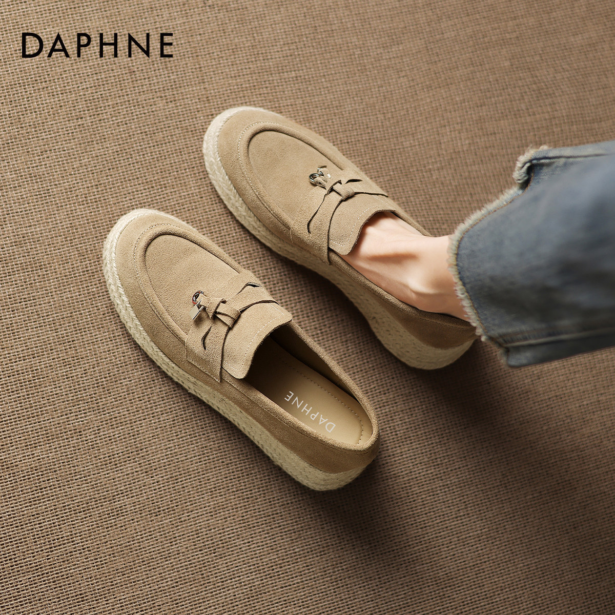 达芙妮乐福鞋女2026新款真皮单鞋平底女鞋软皮春季豆豆妈妈小皮鞋