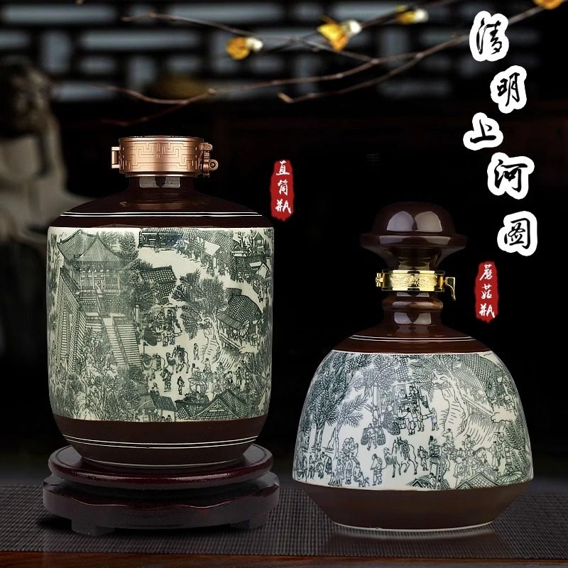 景德镇陶瓷泡酒坛子清明上河图1斤3斤5/10斤仿古酒瓶密封复古酒壶