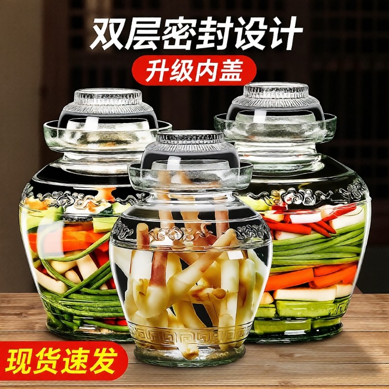 四川泡菜坛子家用玻璃罐密封罐咸菜罐酸菜专用罐子老式腌菜缸泡酒