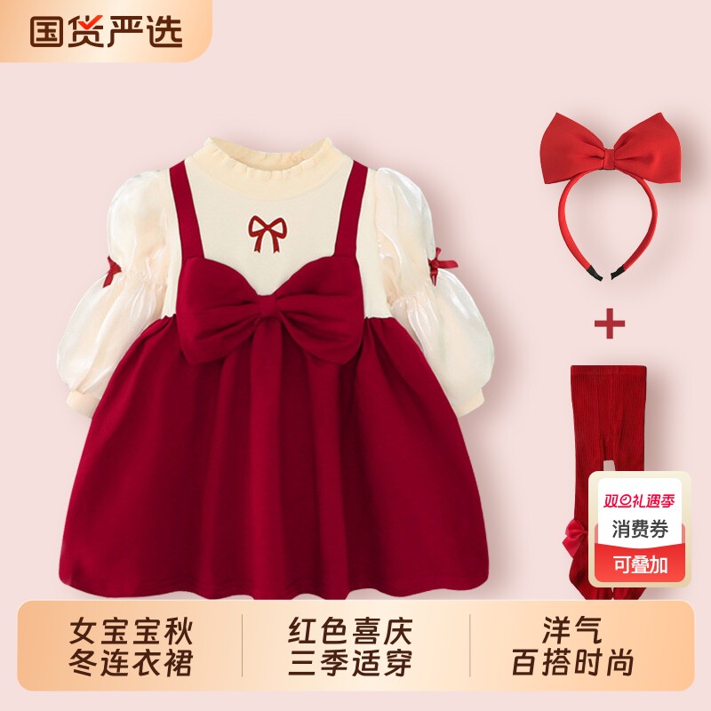 - 儿童红裙子 连衣裙秋