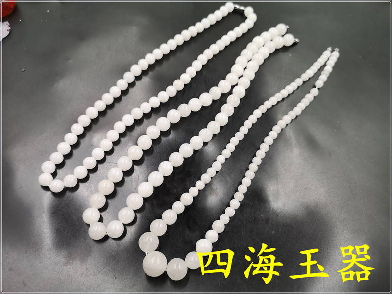 精品 天然和田玉老料羊脂白玉圆珠款项链 女款玉石妈妈链项链饰品