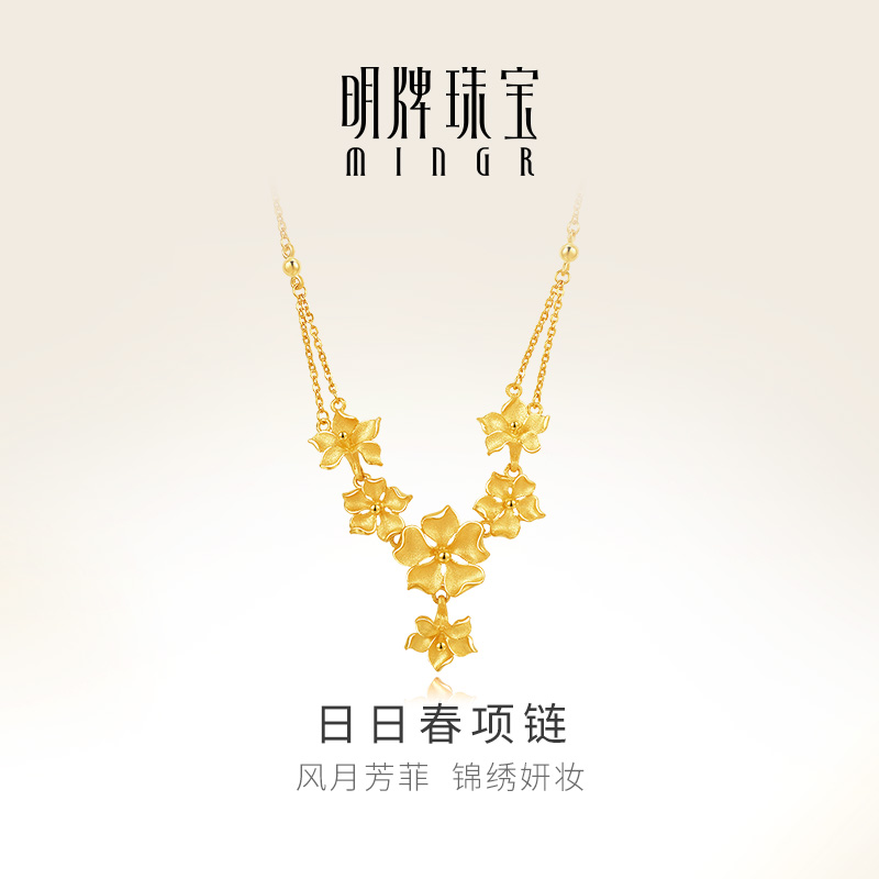 明牌珠宝足金黄金项链 婚嫁套链日日春喜庆花朵项链 女款 AFB0123