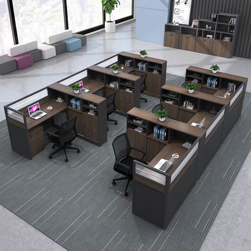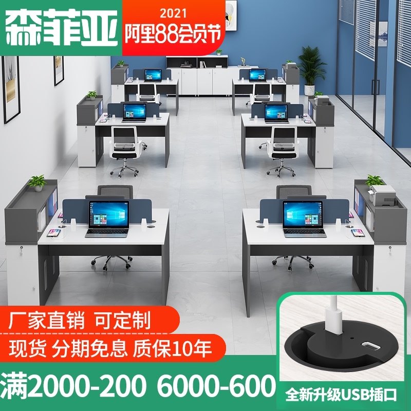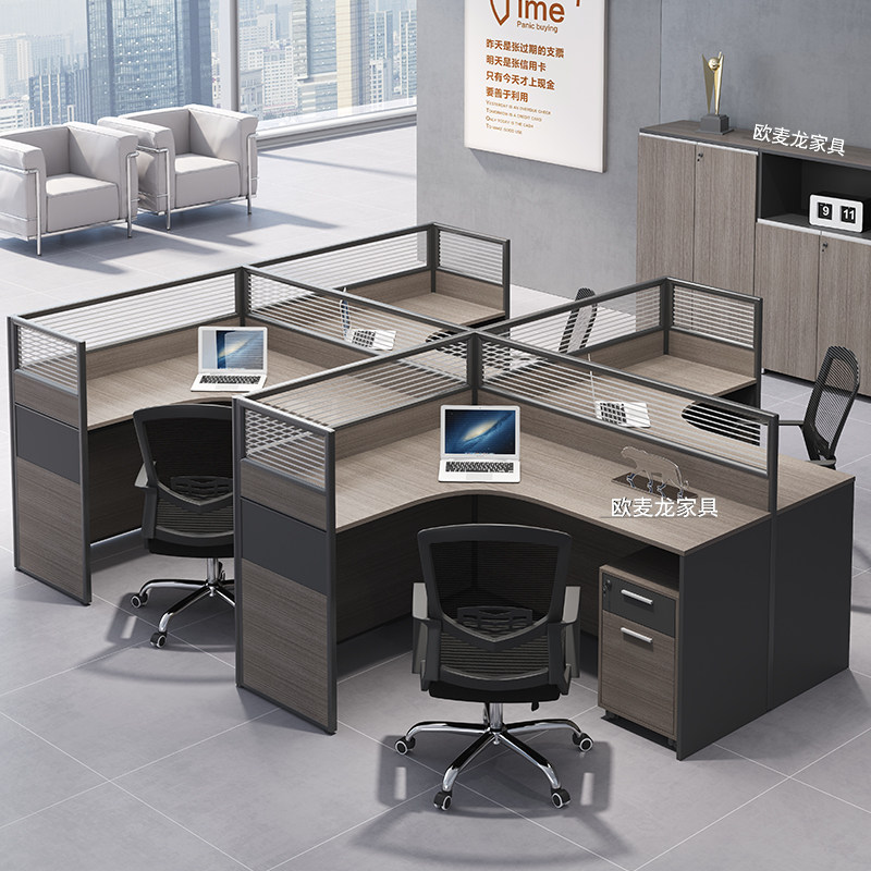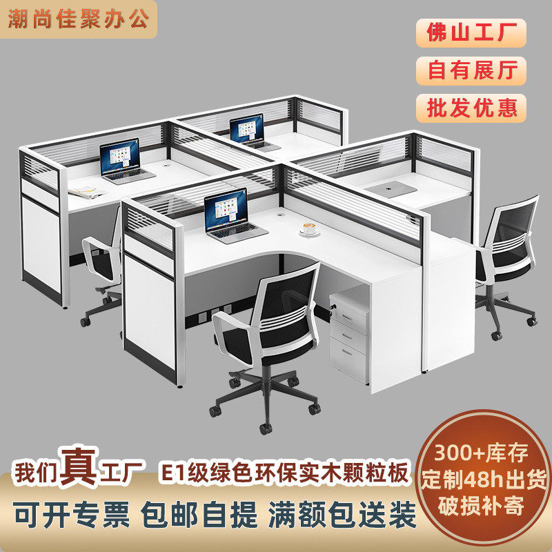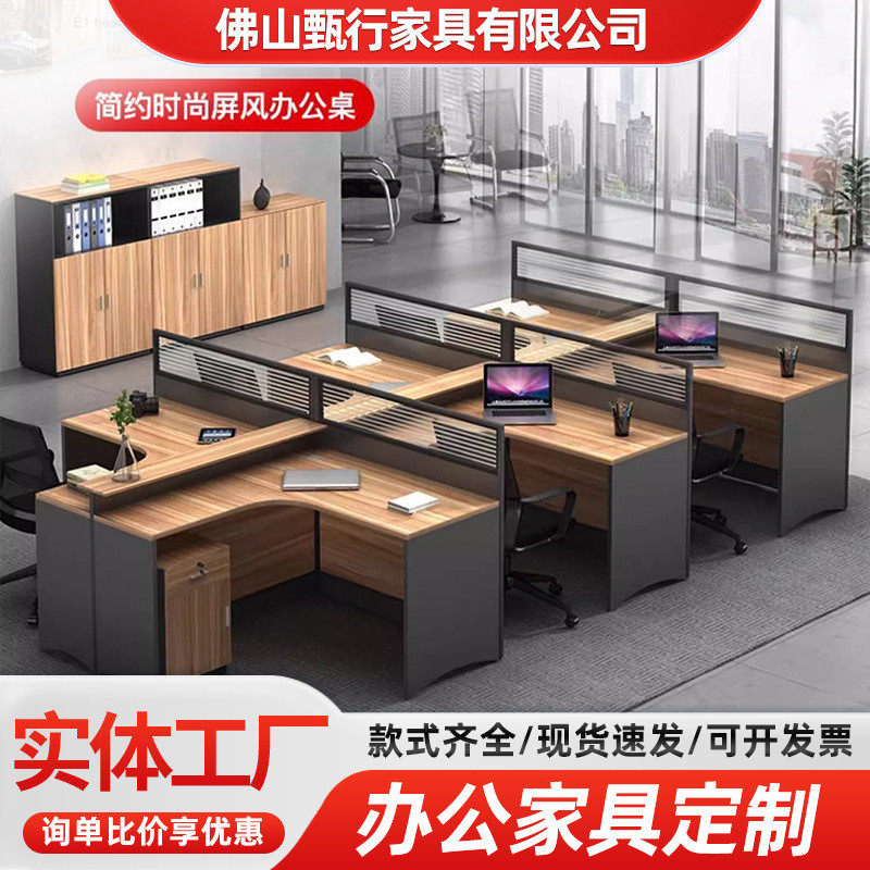 简约现代办公员工桌椅组合套装卡座四4/6人位职员屏风办公室家具