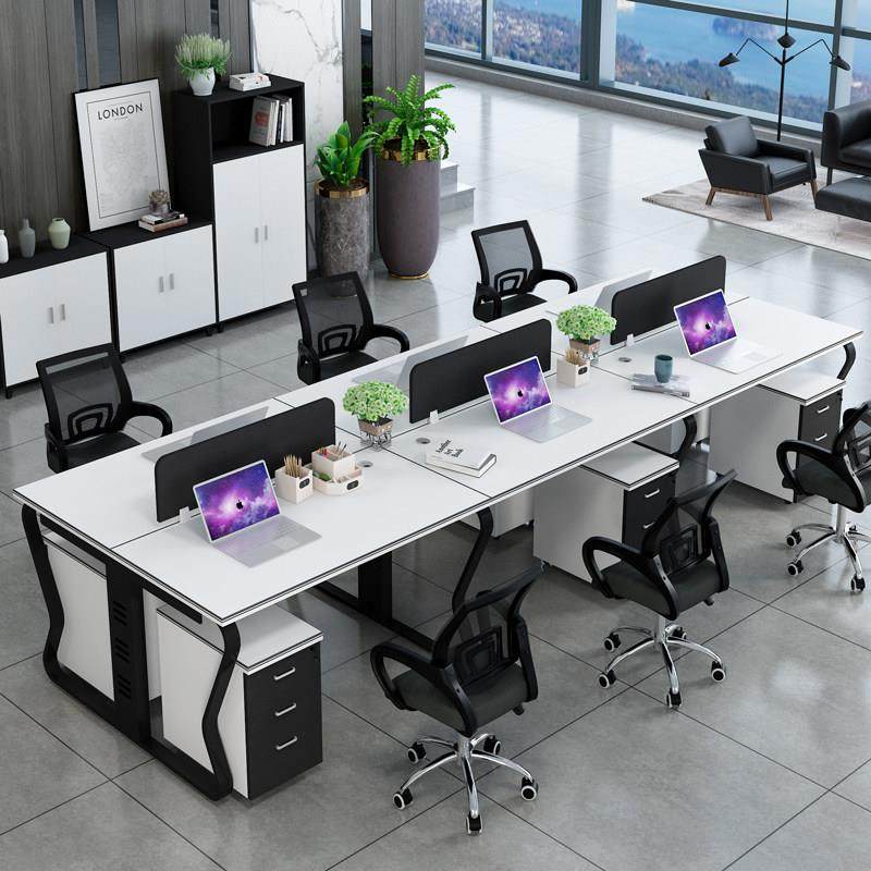 工厂黑白色简约风职员办公桌6人位员工工作位员工电脑桌组合隔断