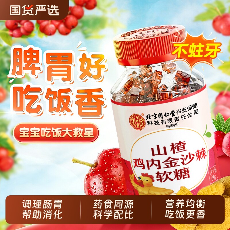 北京同仁堂内廷上用山楂鸡内金调理脾胃儿童婴幼儿沙棘软糖官方店