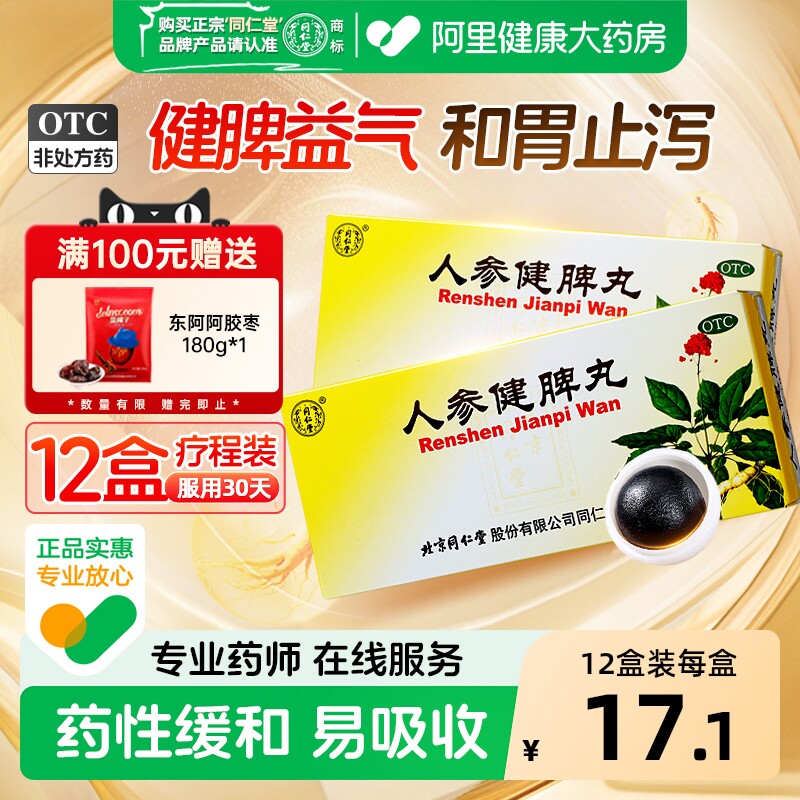 北京同仁堂人参健脾丸正品大蜜丸消食健脾祛湿调理脾胃虚弱湿气重