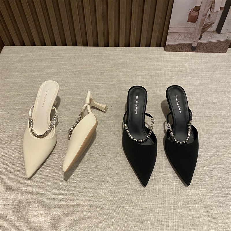 仙女风凉鞋配裙子尖头包头半拖鞋法式细跟高跟鞋2023春款韩版女鞋