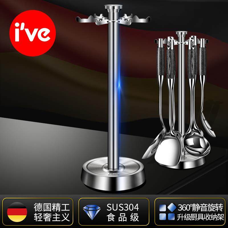 德国ive 304不锈钢旋转厨具架锅铲挂架挂件厨房炊具铲勺收纳架子
