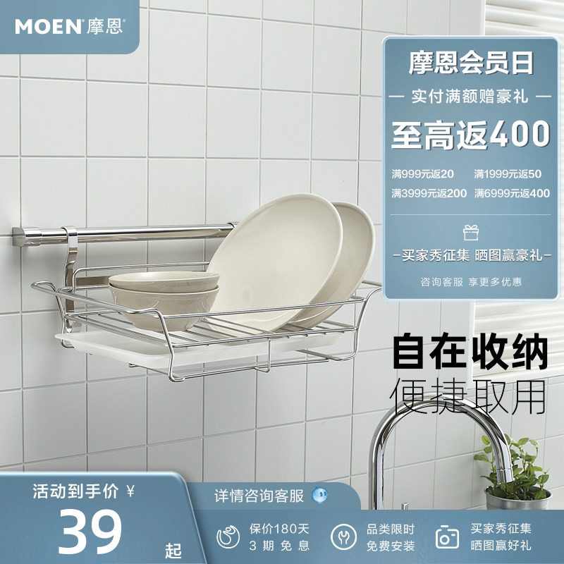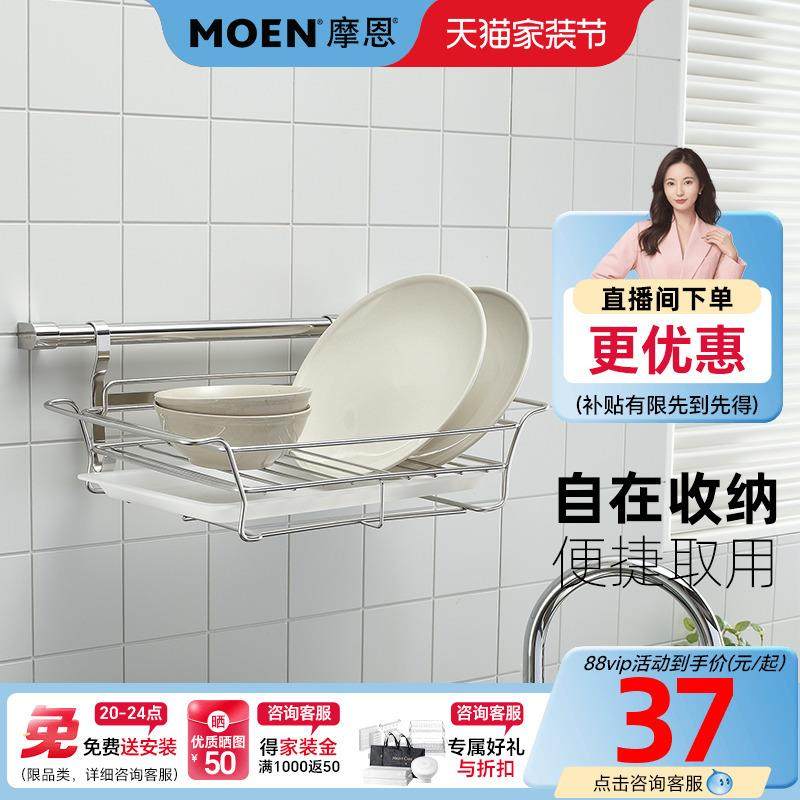 摩恩厨房置物架壁挂厨房五金挂件厨房304不锈钢厨房挂杆架锅盖架