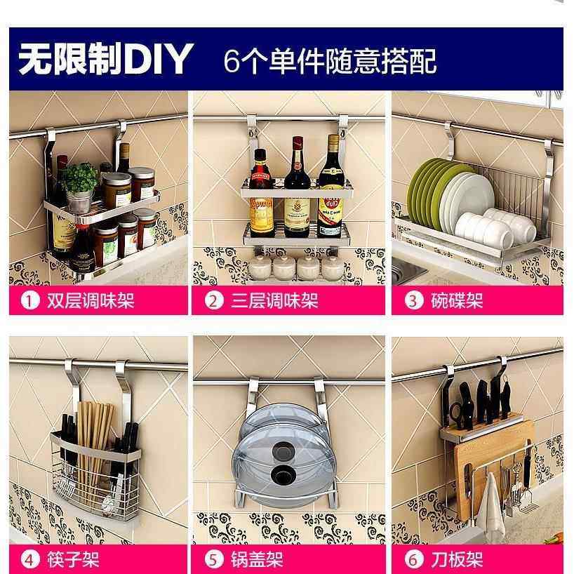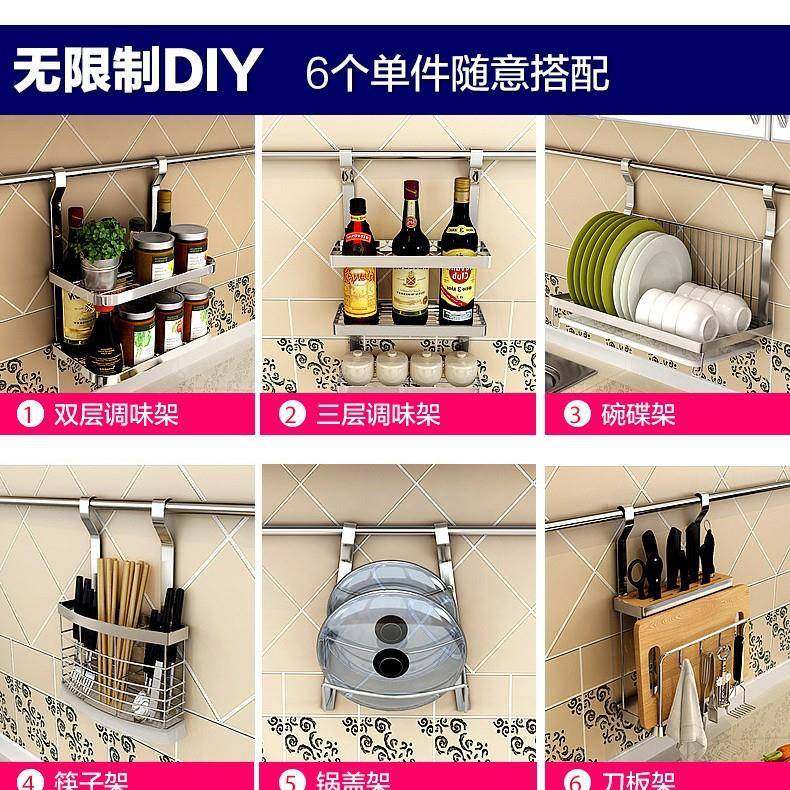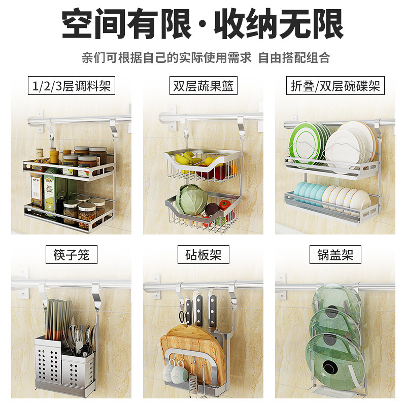 厨房置物架不锈钢壁挂式挂件免打孔沥水放碗架刀架锅架挂钩收纳架