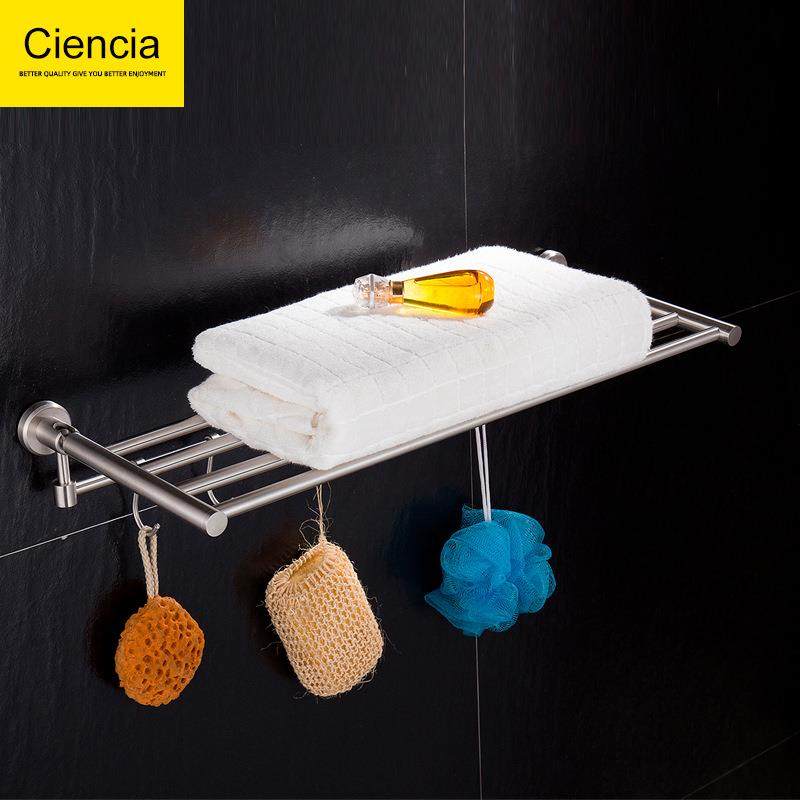 SUS304不锈钢拉丝圆形浴巾架可折叠毛巾架置物架浴室挂件厨房配件