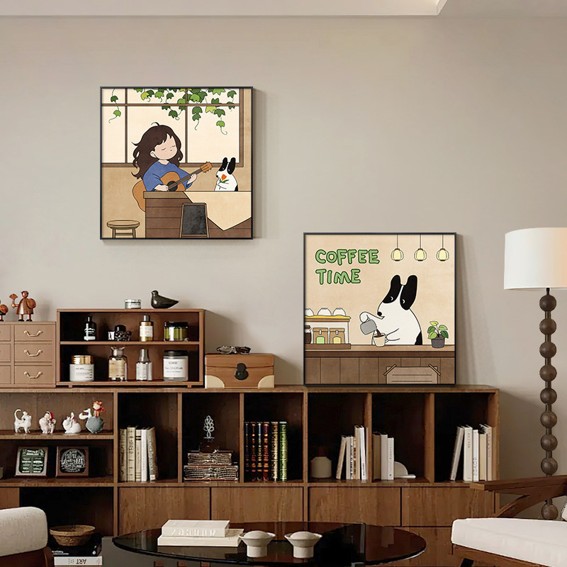 餐厅装饰画现代简约卡通小狗咖啡卧室壁画墙面挂件厨房餐边柜挂画