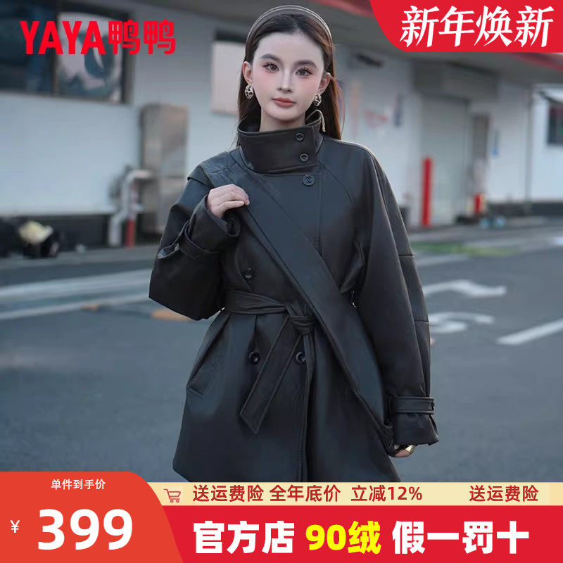 鸭鸭皮衣羽绒服女中长款2025秋冬季新款潮流洋气收腰显瘦气质外套