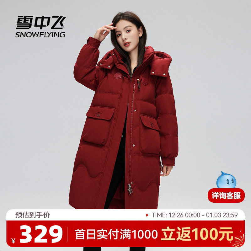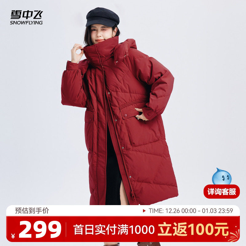 雪中飞2025秋冬热销女士羽绒服中长款廓形简约保暖新年红色礼物