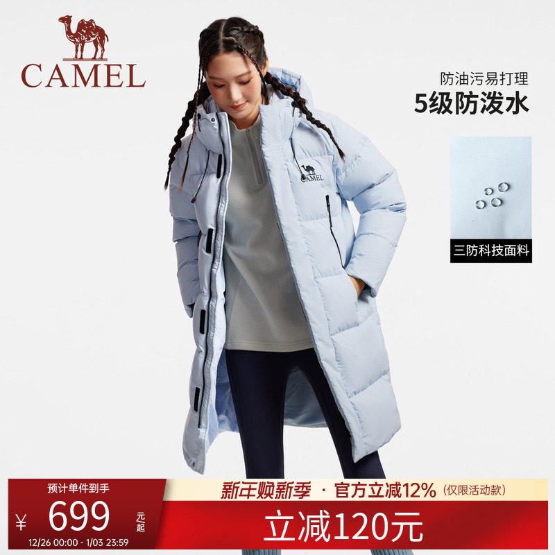 骆驼中长款羽绒服男女同款2025冬季新款三防加厚保暖连帽羽绒外套