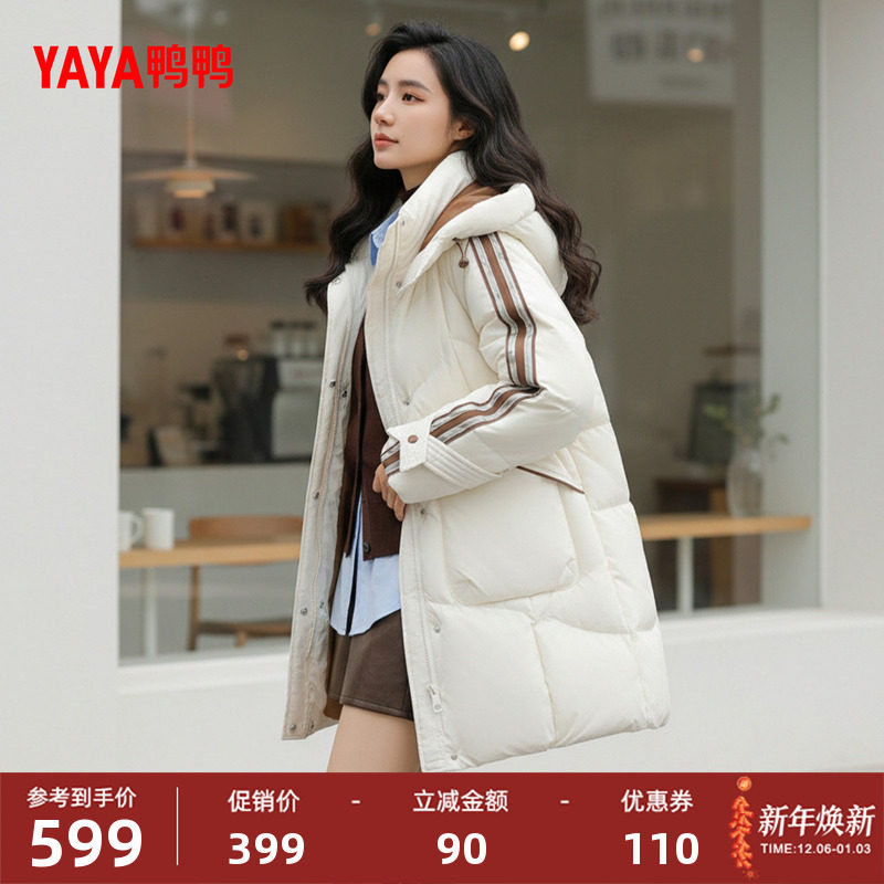 鸭鸭羽绒服女中长款2025冬季新款韩版时尚加厚宽松白鸭绒保暖外套