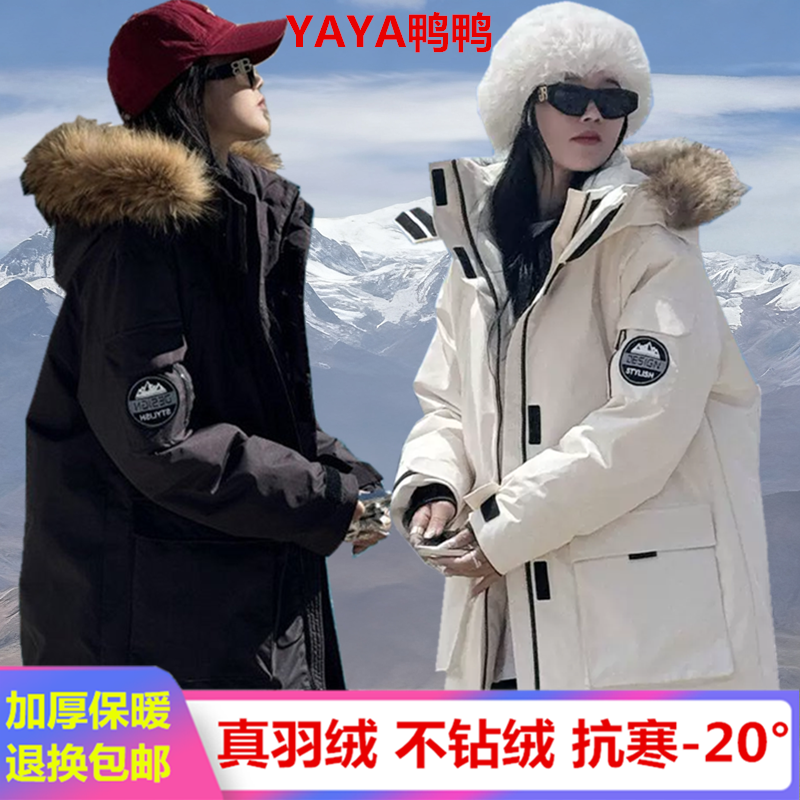 鸭鸭羽绒服女中长款2025年冬季新款加厚时尚派克服白鸭绒工装外套