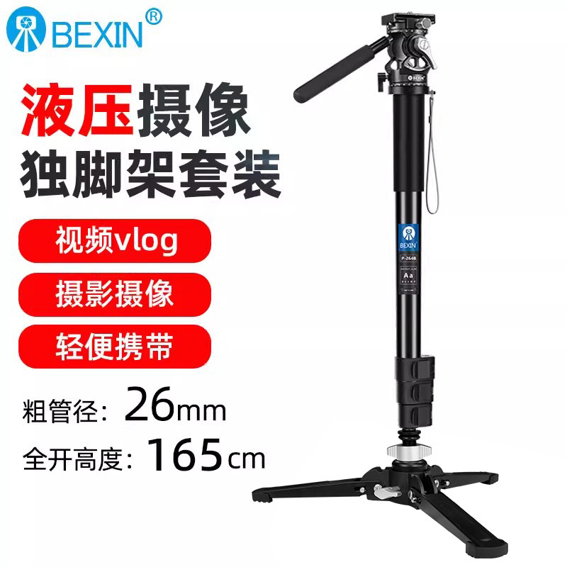 贝欣P264B单反摄像独脚架轻便携微单相机支架液压阻尼云台稳定器专业单脚架DV摄影手机直播三脚架独角支架