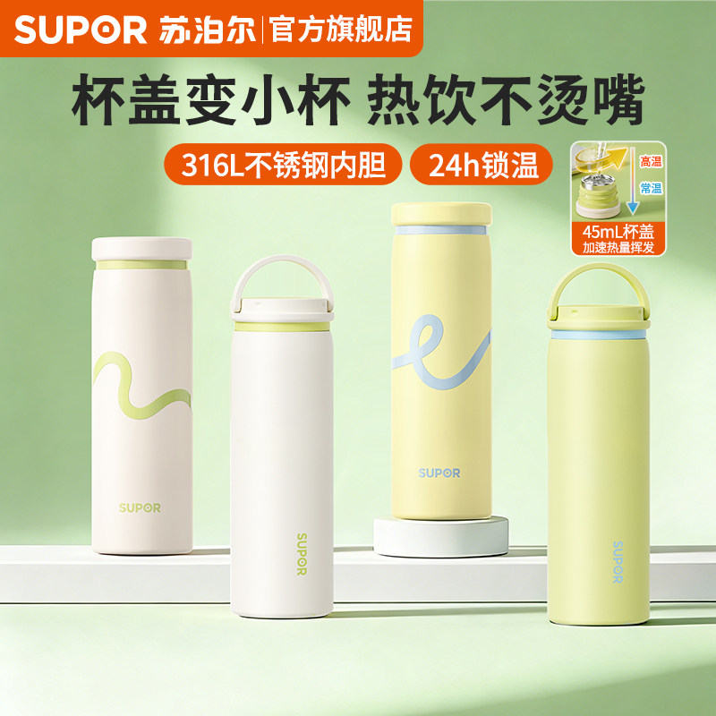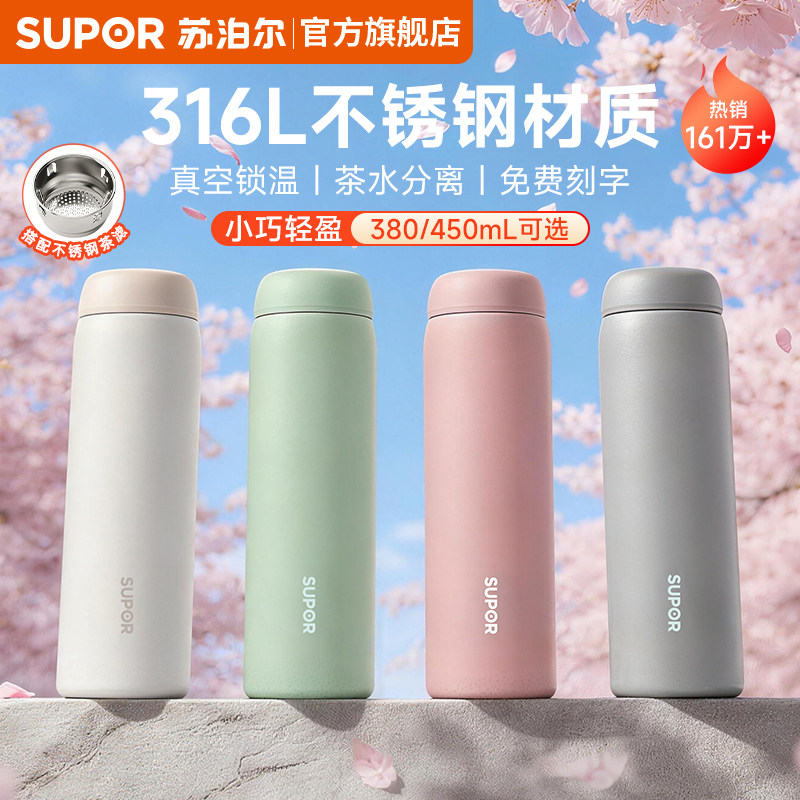 苏泊尔保温杯女士高颜值316L不锈钢学生礼物定制泡茶水杯子新款男