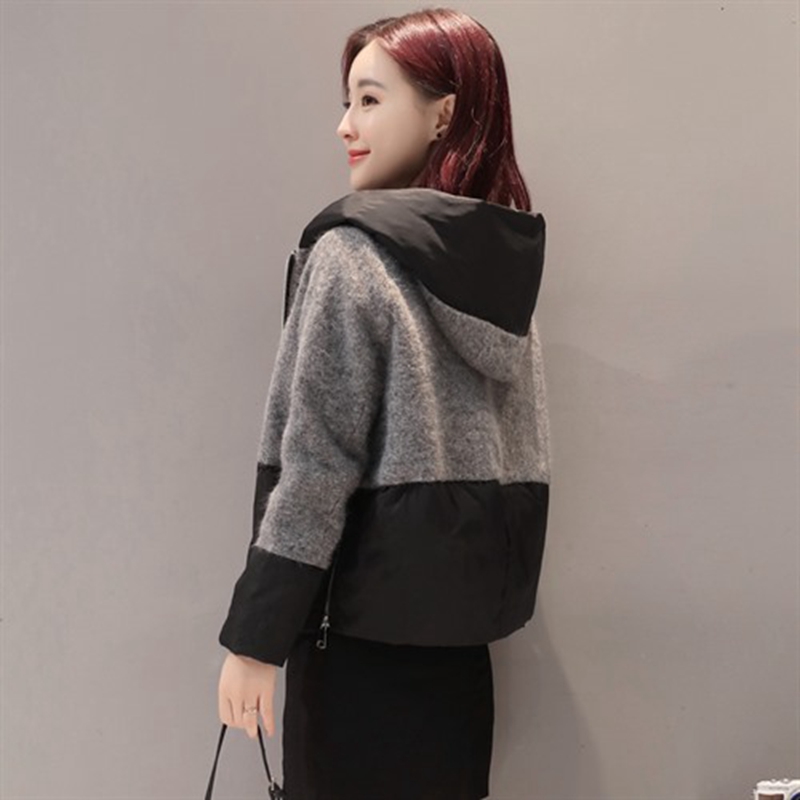反季特价棉衣外套女新款毛呢拼接撞色短款棉服女士时尚薄款小棉袄