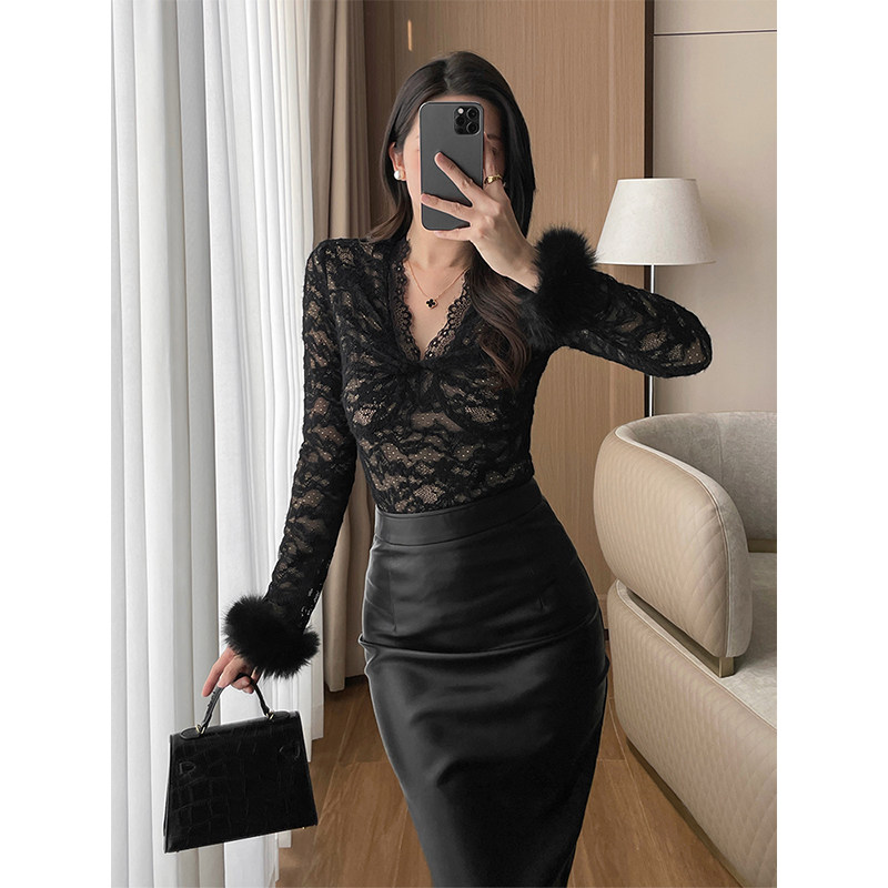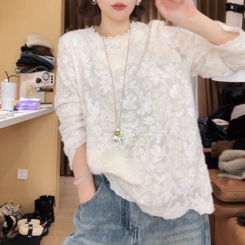 - 蕾丝衫女长袖秋冬