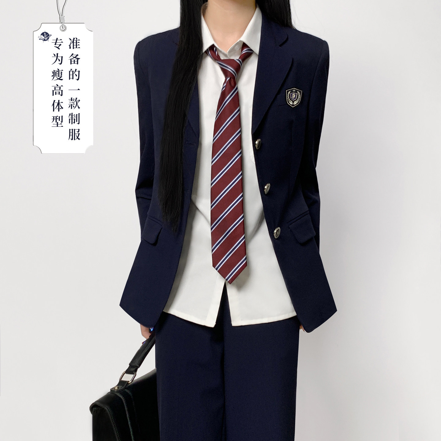 木村叔jk制服绀色西服外套女生春秋季原创平驳圆领三粒扣西装套装