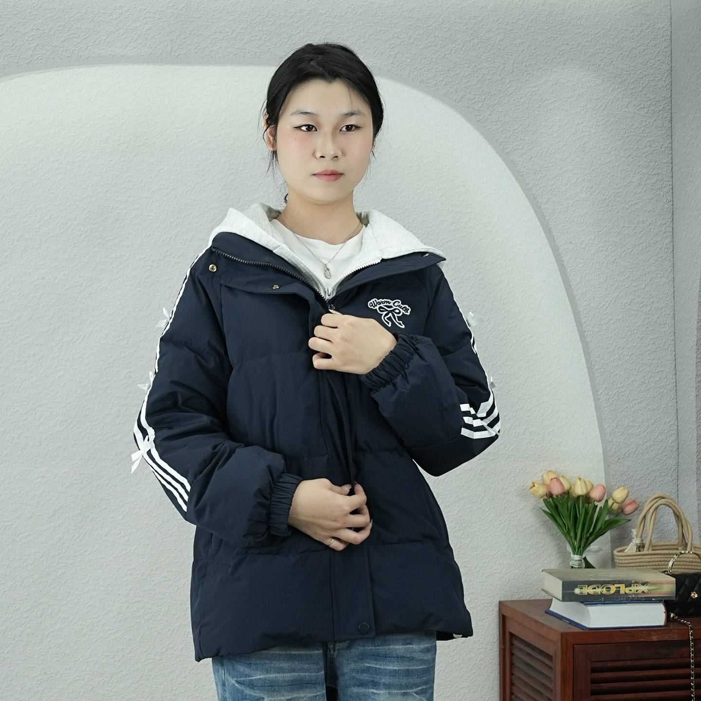 假两件减龄外套女生2025冬季蝴蝶字母刺绣宽松显瘦防风保暖羽绒服