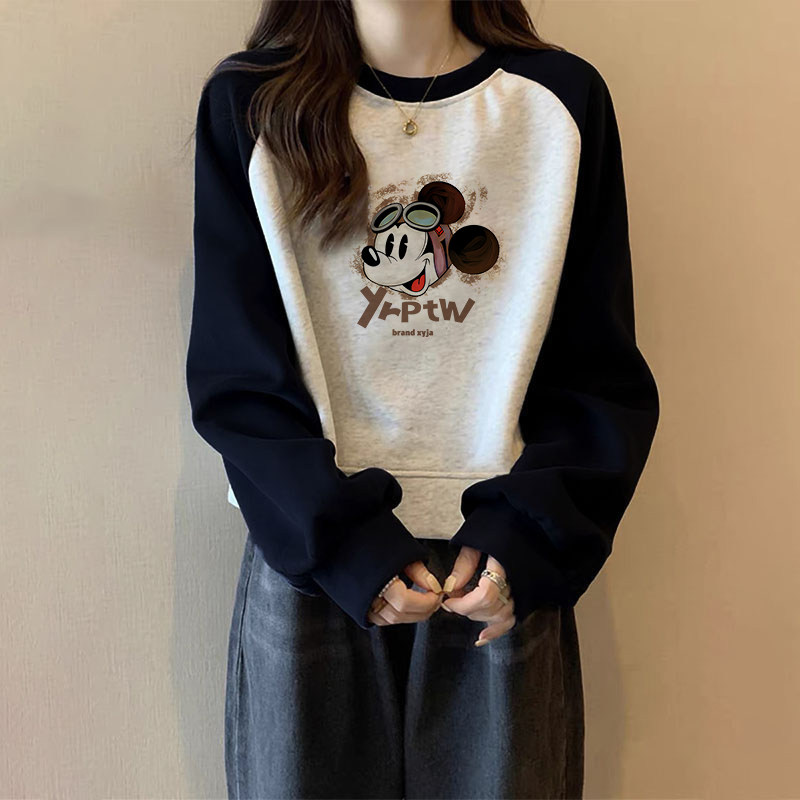 今年秋冬季薄款卫衣潮小众圆领宽松休闲风短款黑灰插肩袖外套女生