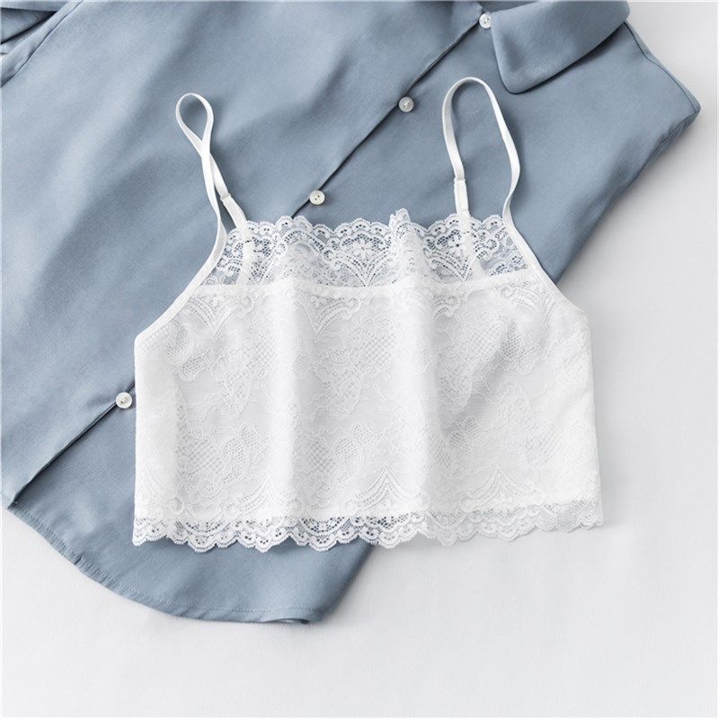 真丝小吊带蕾丝打底衫 带胸v垫防走光内搭 黑白吊带衫上衣女士背
