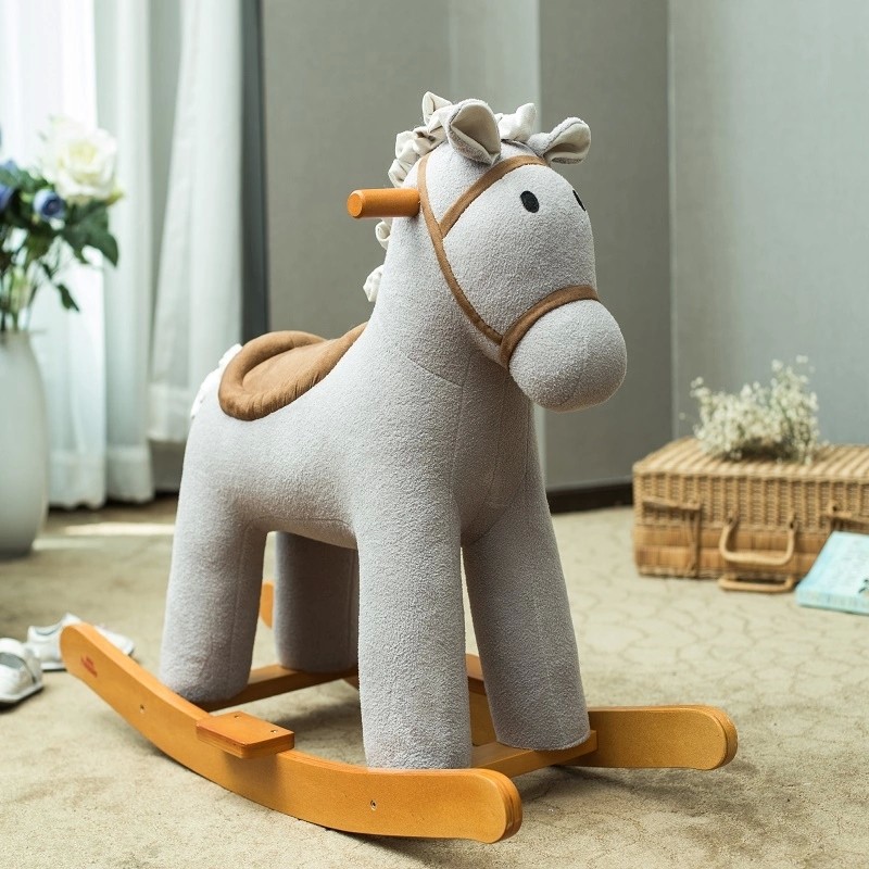 哈喜屋儿童实木摇马木马ins北欧风木制摇摇椅宝宝玩具1周岁礼物