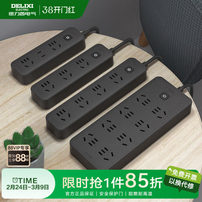 德力西多功能插座转换器黑色插排插线板面板多孔拖线板接线板宿舍