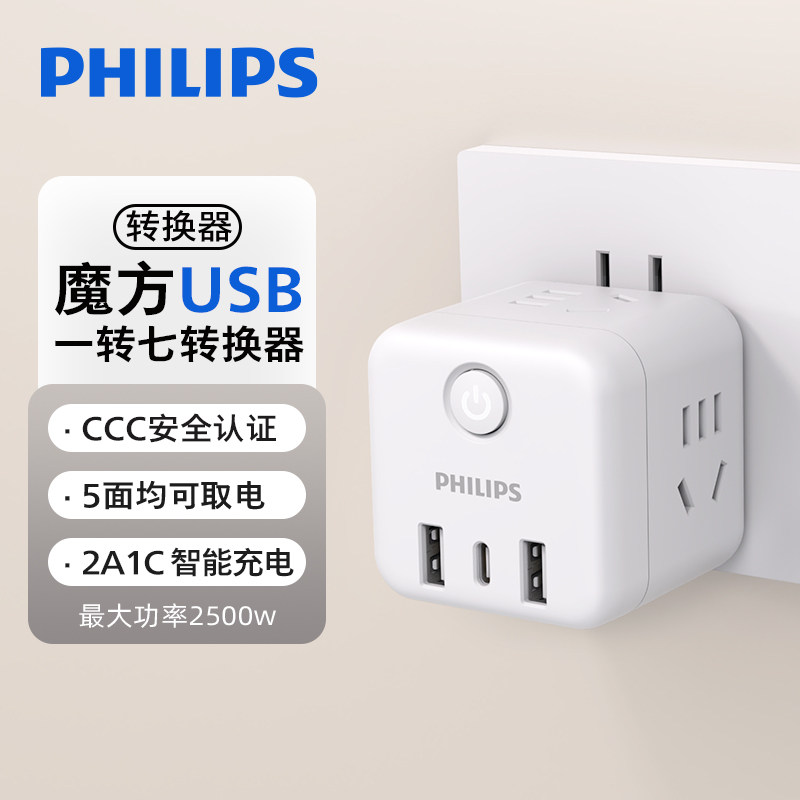 飞利浦插座转换器厨房扩展usb插头分控插排多功能家用一转三排插