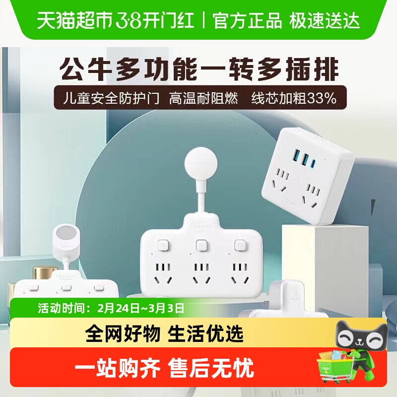 公牛插座usb插排插线板拖线板插板带线家用多功能正品转换器多用
