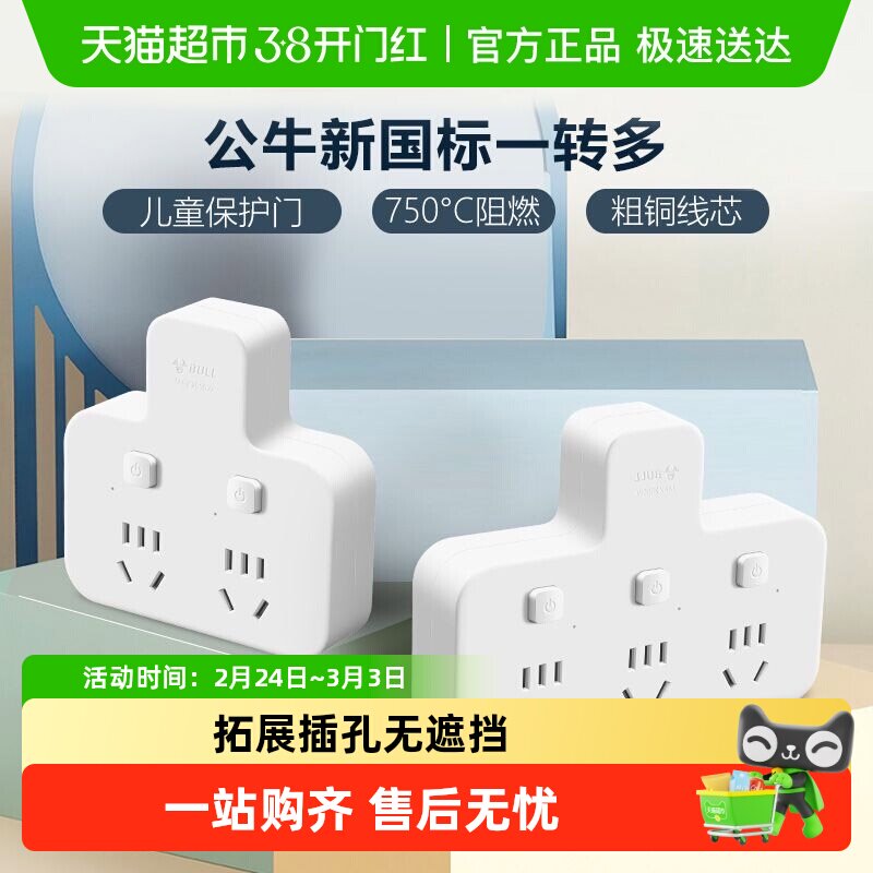 公牛1分2插座转换器一转二多孔电源插头一变二家用插线板插排插板
