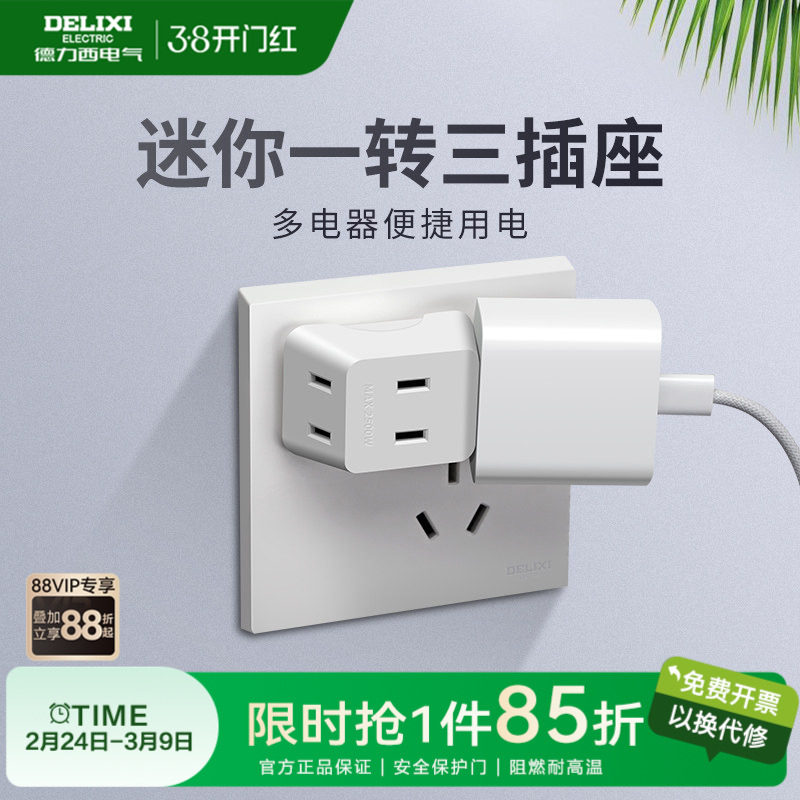 德力西插座转换器一转三二孔电源扩展插多孔功能插线板插排插扩展