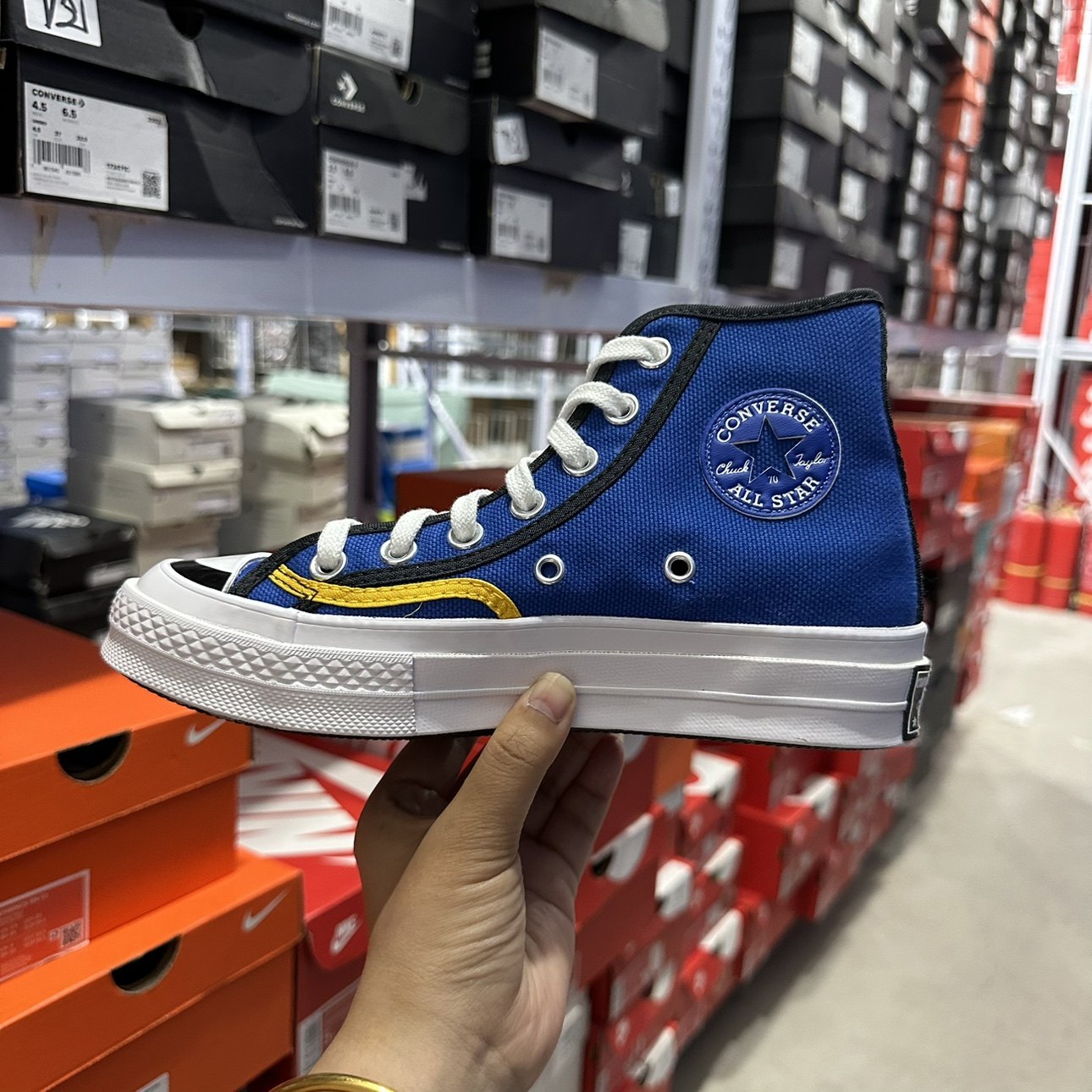 正品匡威converse酷动城 口袋可拆卸白蓝拼色高帮帆布鞋170829C