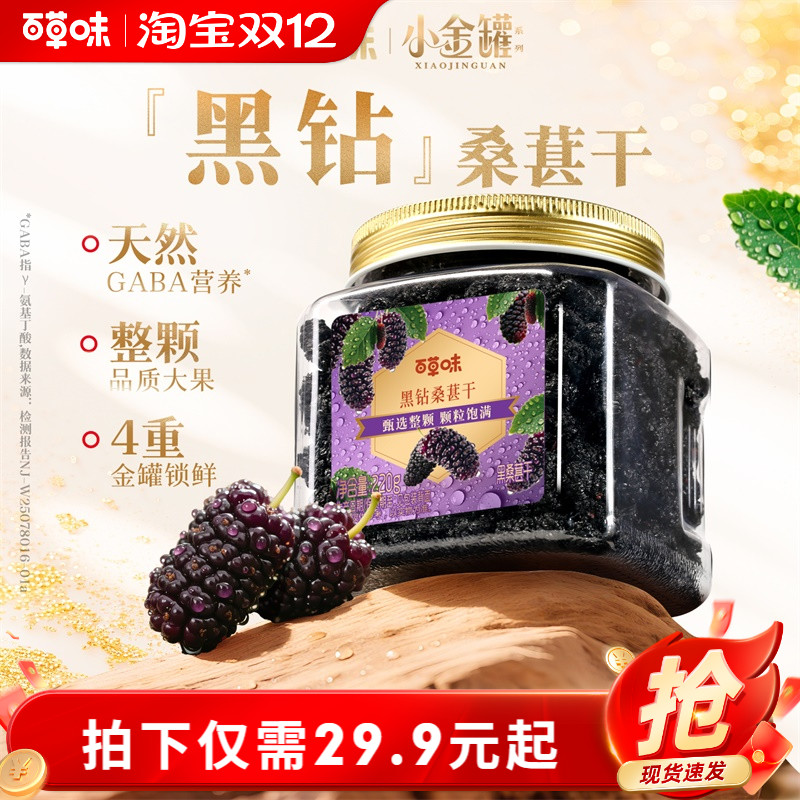 百草味黑桑葚干整颗大颗粒220g罐装果脯水果干休闲即食小吃零食
