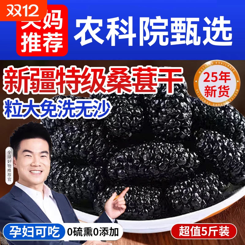 新疆桑葚干正宗黑桑葚干泡茶水泡酒专用无糖干果免洗黑桑椹子特产