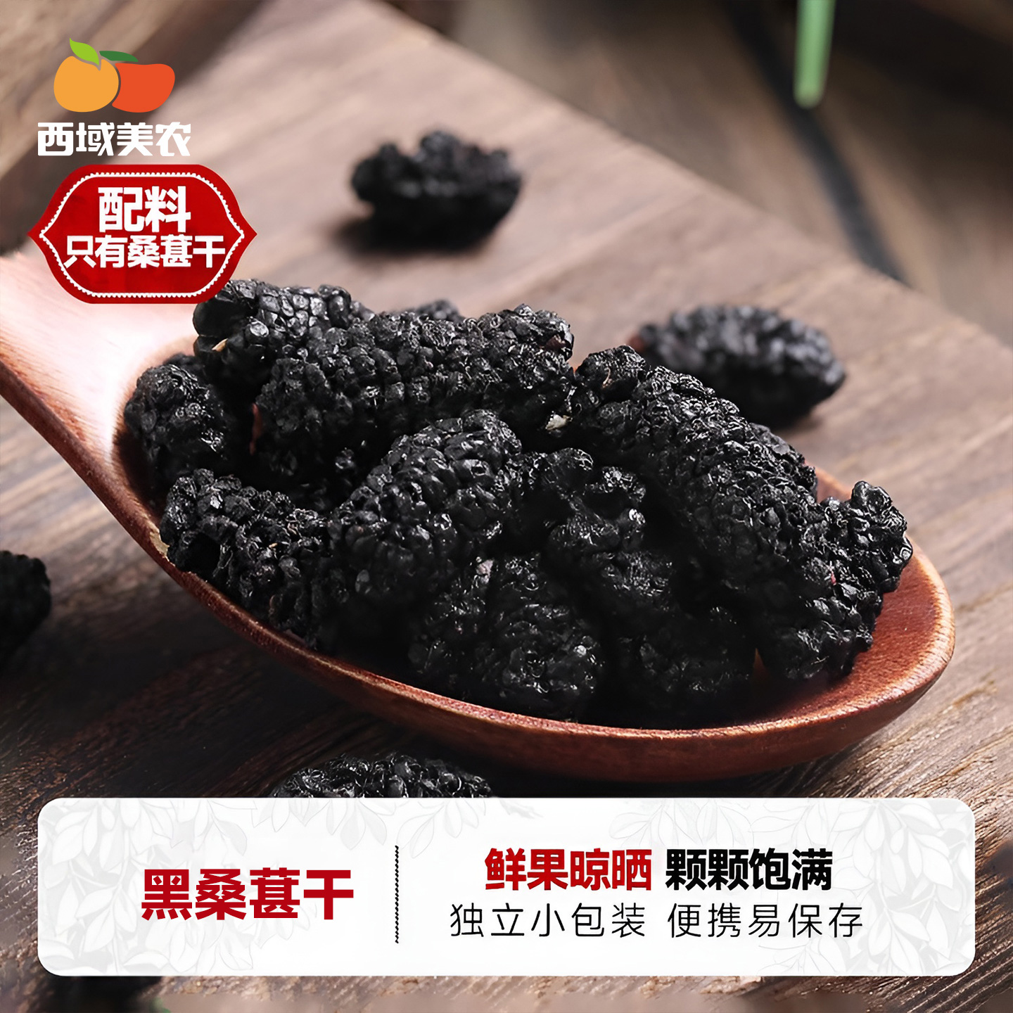 西域美农新疆黑桑葚干250g泡水喝袋可干吃果干桑椹干甜蜜零食特产