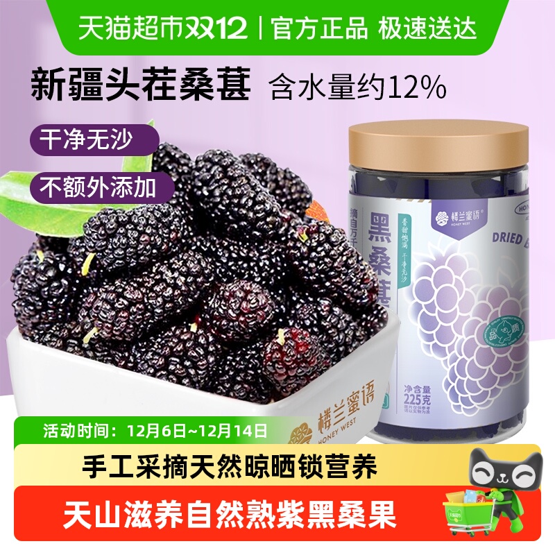楼兰蜜语特级黑桑葚干新疆新鲜无沙果大225g罐桑椹干泡茶罐装零食