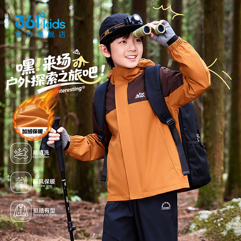 四防科技|361度童装男童加绒冲锋外套2025秋冬三合一女童运动上衣